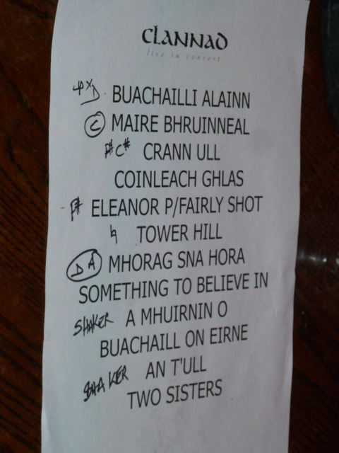 The Second Set: Newgrange, Éirigh Is Cuir Ort Do Chuid Éadaigh, dTigeas a Damhsa, Robin (The Hooded Man) Herne/Ancient Forest/Lady Marian/Action, In a Lifetime, Dúlamán @Info[bass and drum solos], I Will Find You, Closer to Your Heart, Theme From Harry’s Game, Teidhir Abhaile Riú, Nil Se’n La