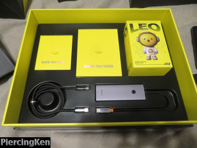 The bottom shows that we are getting a USB Universal cable and a hub to plug a few other devices into. Considering how few ports are on my current system this was a nice thing to find included. Then there is the box labeled “Leo”.